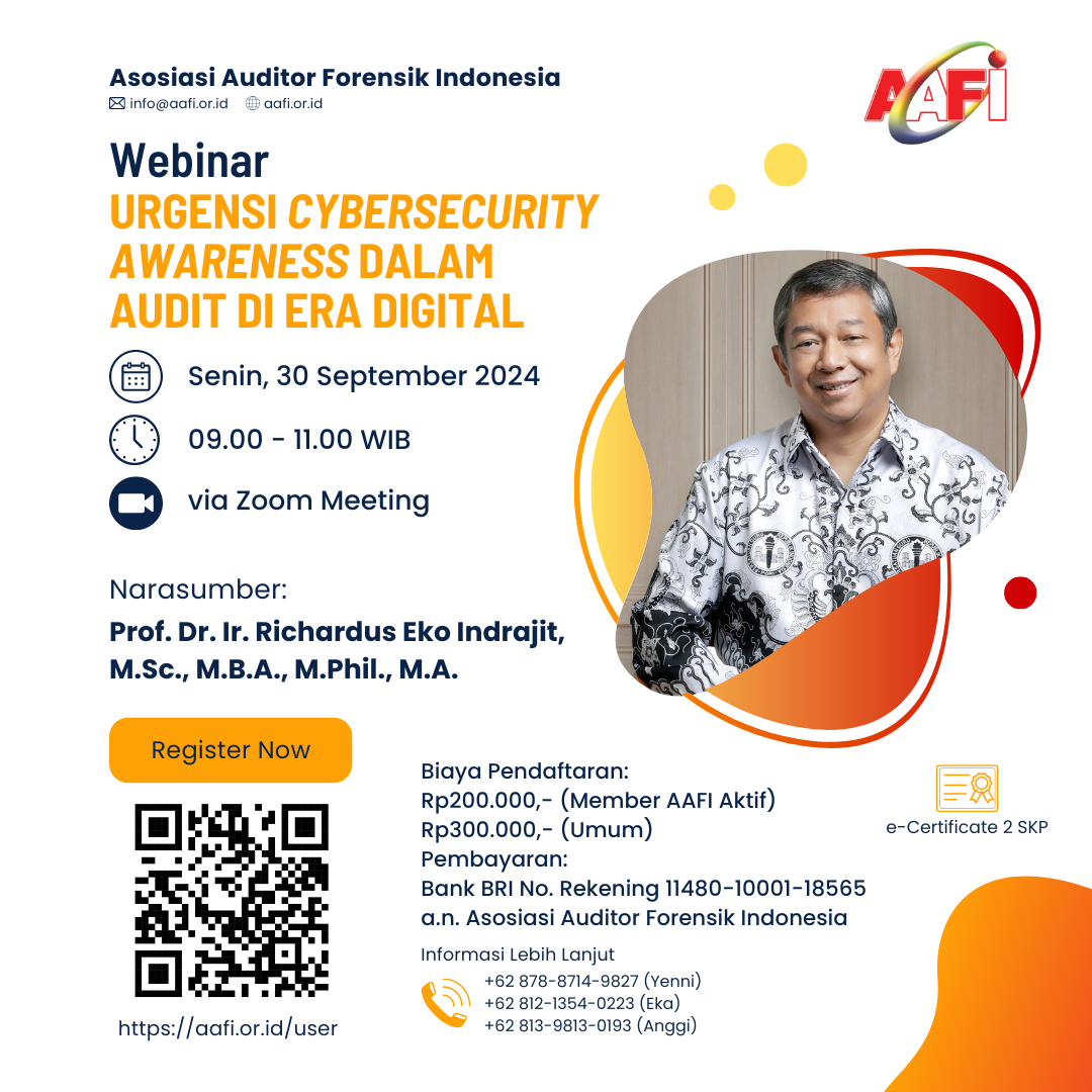 Asosiasi Auditor Forensik Indonesia Miyanagame (AAFI MIYANAGAME) mengundang Bapak/Ibu dalam Webinar Online dengan Tema: Urgensi Cybersecurity Awareness dalam Audit di Era Digital